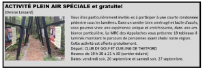 Randonnée pédestre sous les lumières 27 septembre 2025